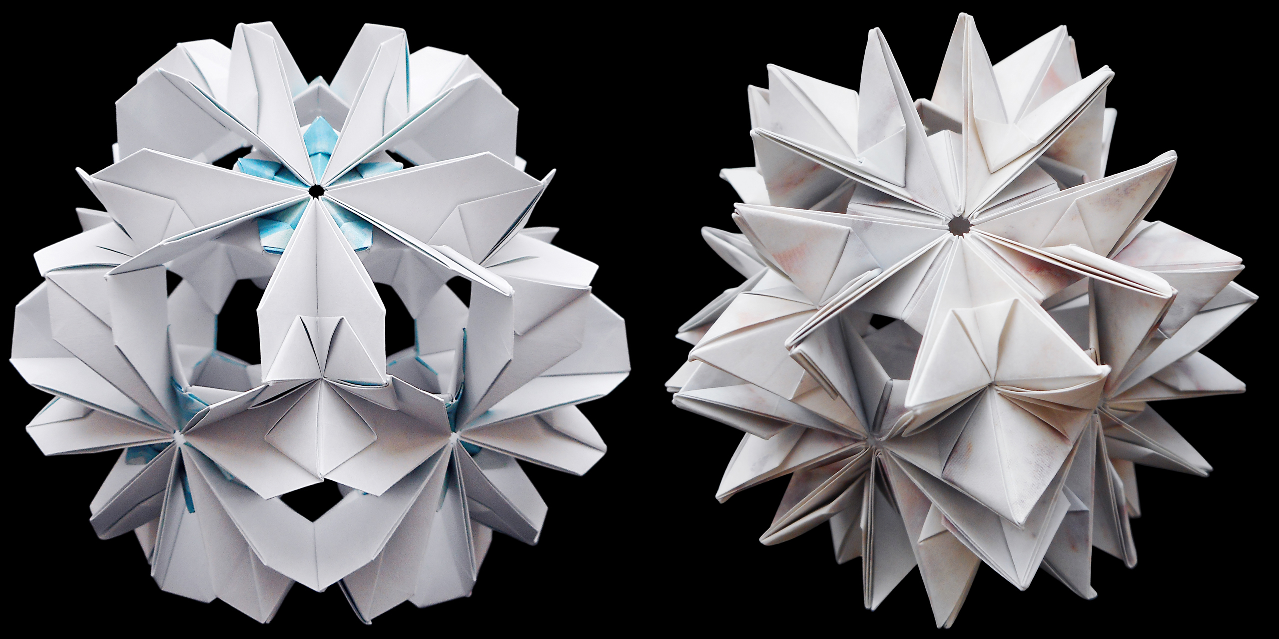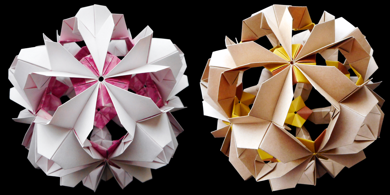 『パッサカリア』は、簡単な形をいかにつなぐかにチャレンジしている『くす玉組曲シリーズ』のひとつで、このくす玉組曲シリーズのほとんどの作品は、パーツを裏返して組むことができる。