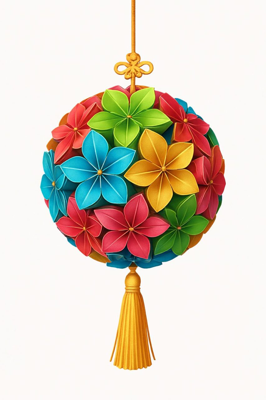 折り紙で作るくす玉を描いてください。