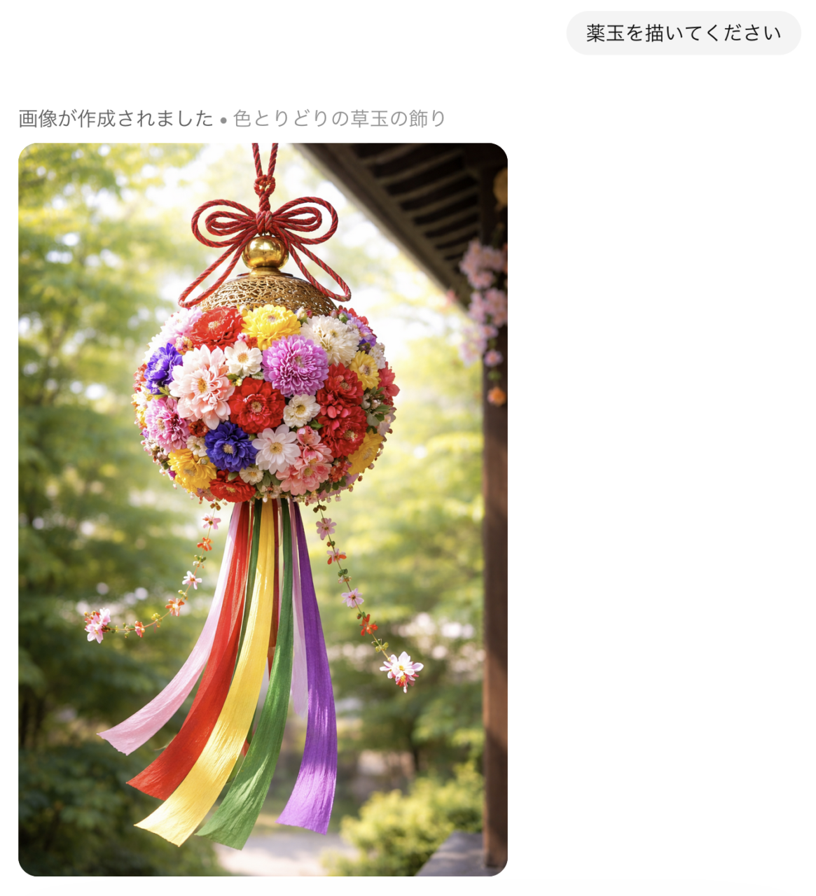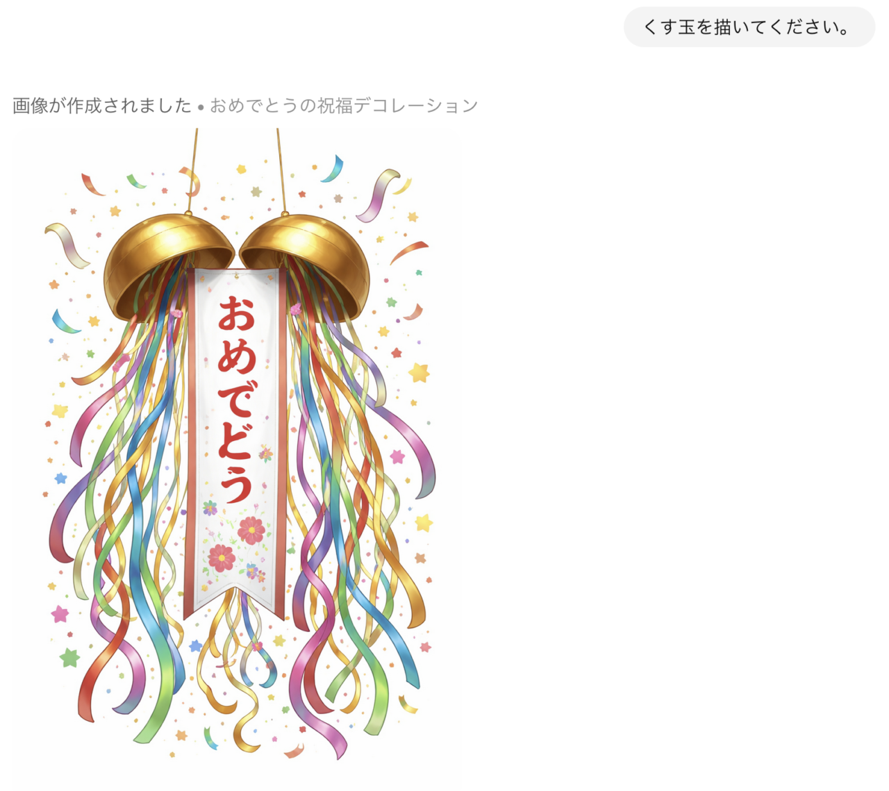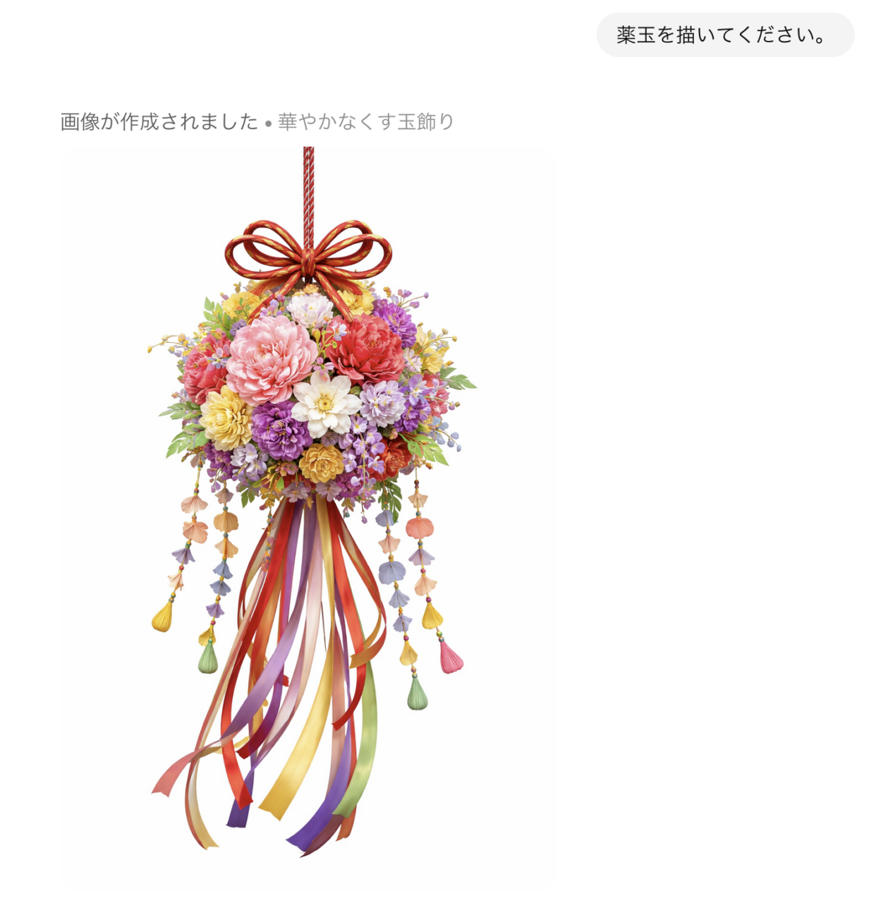 有名どころの AI 『Chat GPT』くんは、どんなくす玉を描いてくれるかな。
