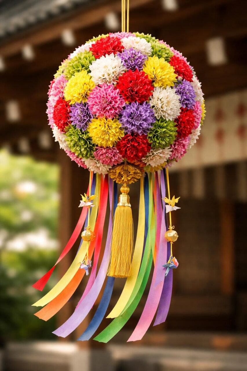 薬玉を描いてください + 江戸時代の風景にしてください