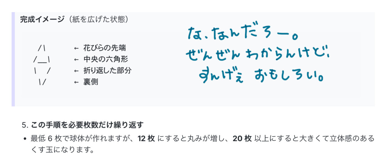 さらにLumoくんは、くす玉を描くステップを丁寧に説明してくれた。