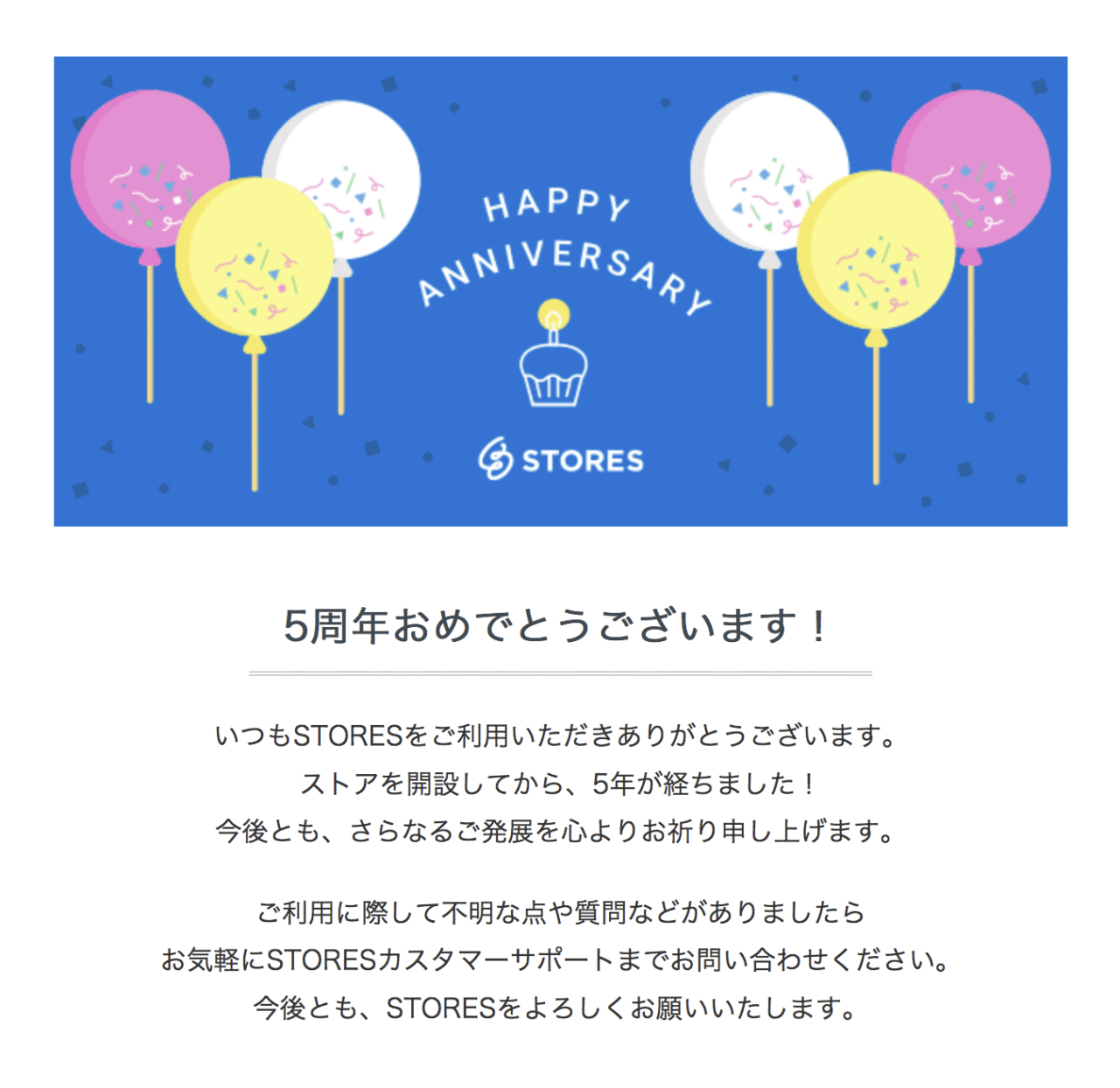 今日の日付が変わった頃、ORIGAMIO SHOP を置いているサイト「STORES」から、5周年おめでとうございます!! というメールが届いた。