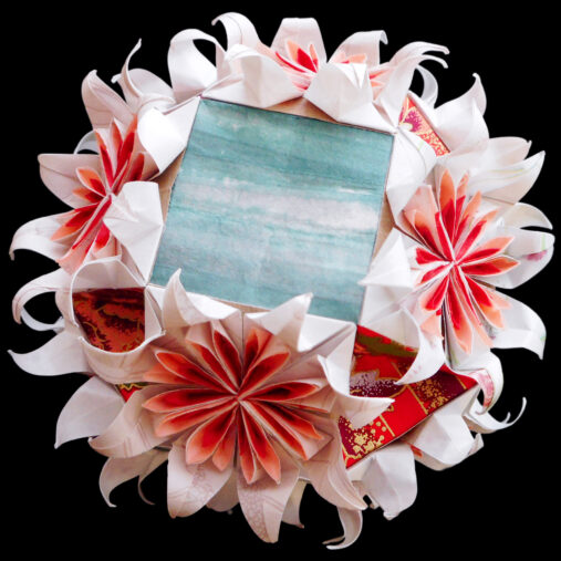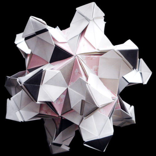 Work's DataAuthor© Mio TsugawaCreatedJanuary 2009MadeJanuary 2009DrawingJune 2025Number of parts40 piecesPaper size15cm (Square paper)Joining materialsStrings, threads Joining methodBind jointMEMOThis is a type of kusudama that is tied toge