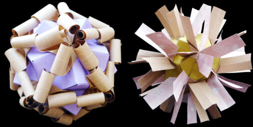 Misaki Rose / みさきローズHatatagami / 霹靂神(はたたがみ)MEMOThese are variations of “Mitsudomoe unit Deko”. Two parts made of different sized paper are combined to make one part. No glue is needed to make this part or to assemble the whole work.Misaki R