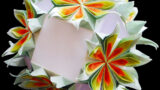 三つ割さくらてまりと同じく、接着剤を用いて組み立てる作品です。てんてんてまりシリーズは、形がまんまるになるので、とっても気に入っている作品のひとつ。